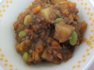 今日の献立は、麦ご飯、マーボーじゃが、ショーロンポー、くきわかめのソテー、牛乳です。