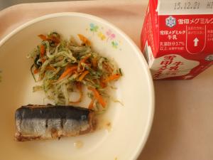 さんまのゆず味噌煮、磯和え、牛乳です。