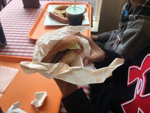 写真だけでなく、味まで伝わるとうれしいのですが・・・。子供たちは、ミールクーポン券の料金の範囲以内でいろいろなお店を選んでグループでランチを楽しんでいるのだと思います。学校の給食は、寒さにぴったりの「おでん風煮物」です。佐世保バーガーもいいな。〈K〉