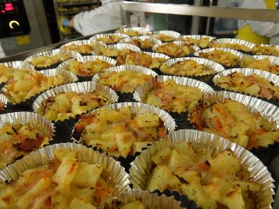 それをアルミカップに並べ、チーズもかけて、オーブンで焼きました♪