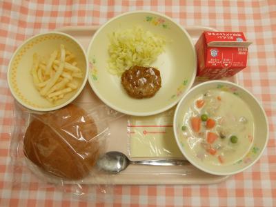 子どもたちも朝から「今日の給食は、ハンバーガーとポテトだ!」と