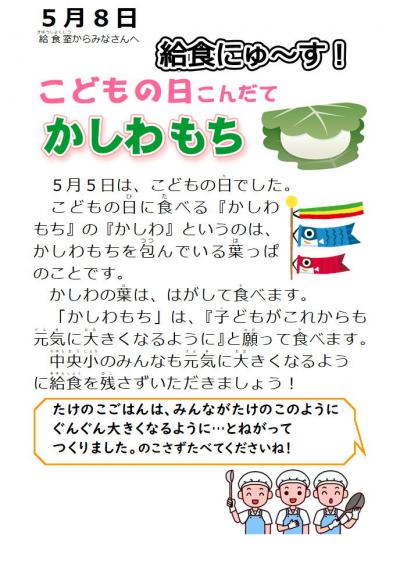 3日前、5月5日の『こどもの日』にあわせたメニューです。