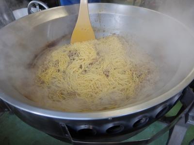 牛乳 米粉パン キノコのカレースパゲティー ごぼうサラダ オレンジ