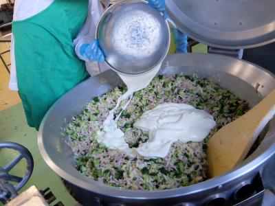 和え物は、1000人分に近い量を一釜で仕上げます。