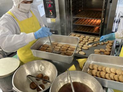 牛乳 麦ごはん 呉汁 蓮根入りつくね 白菜の胡麻和え