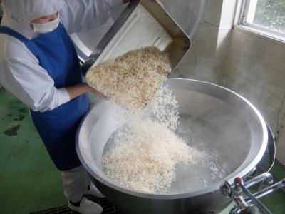 お湯で15分くらいゆでて戻した後、冷却機で冷やします。