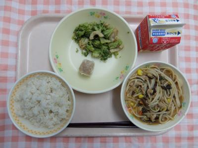 牛乳 むぎごはん みそラーメン シューマイ ブロッコリーのオイスターソース炒め
