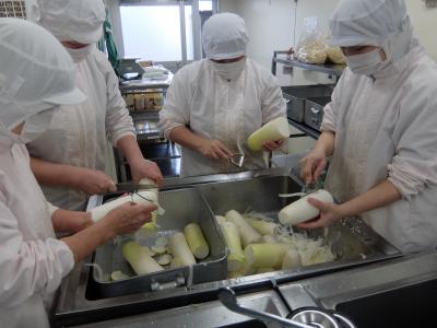 皮をむいて、小さく切った後で、ミキサーで『大根おろし』にします。