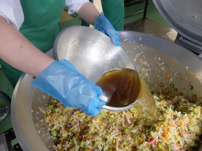 去年まで1年生の国語の教科書にのっていた「サラダでげんき」に登場するりっちゃんがつくるサラダを給食で再現しました。