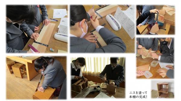 3月3日は、子どもたちが大好きな「きなこ揚げパン」が提供されました。調理室では、朝から約1000人分のパンを揚げて、きなこをからめていました。子どもたちは、教室で授業で学び、給食の時間を心待ちにしているようでした。技術室では、1年生が木工作りの授業で本棚を作っていました。使い慣れない「さしがね」や「ノコギリ」を駆使しながら作っていました。