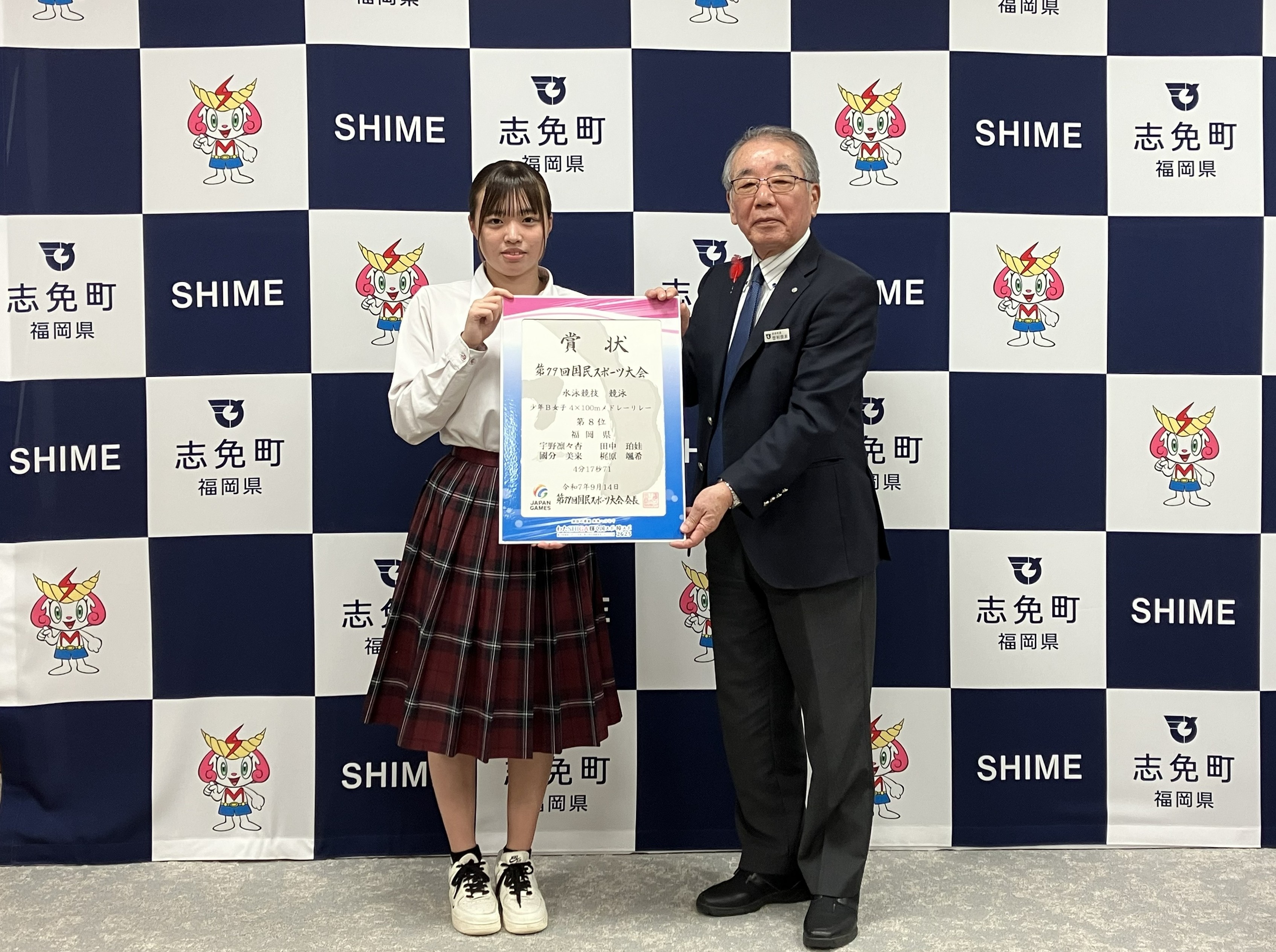 志免中学校3年生の國分美来さんは、10月22日(水)に町長を表敬訪問しました。